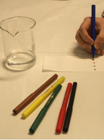 - Tussit, joittenka värisisällön haluat tutkia. Tussien täytyy olla vesiliukoisia.